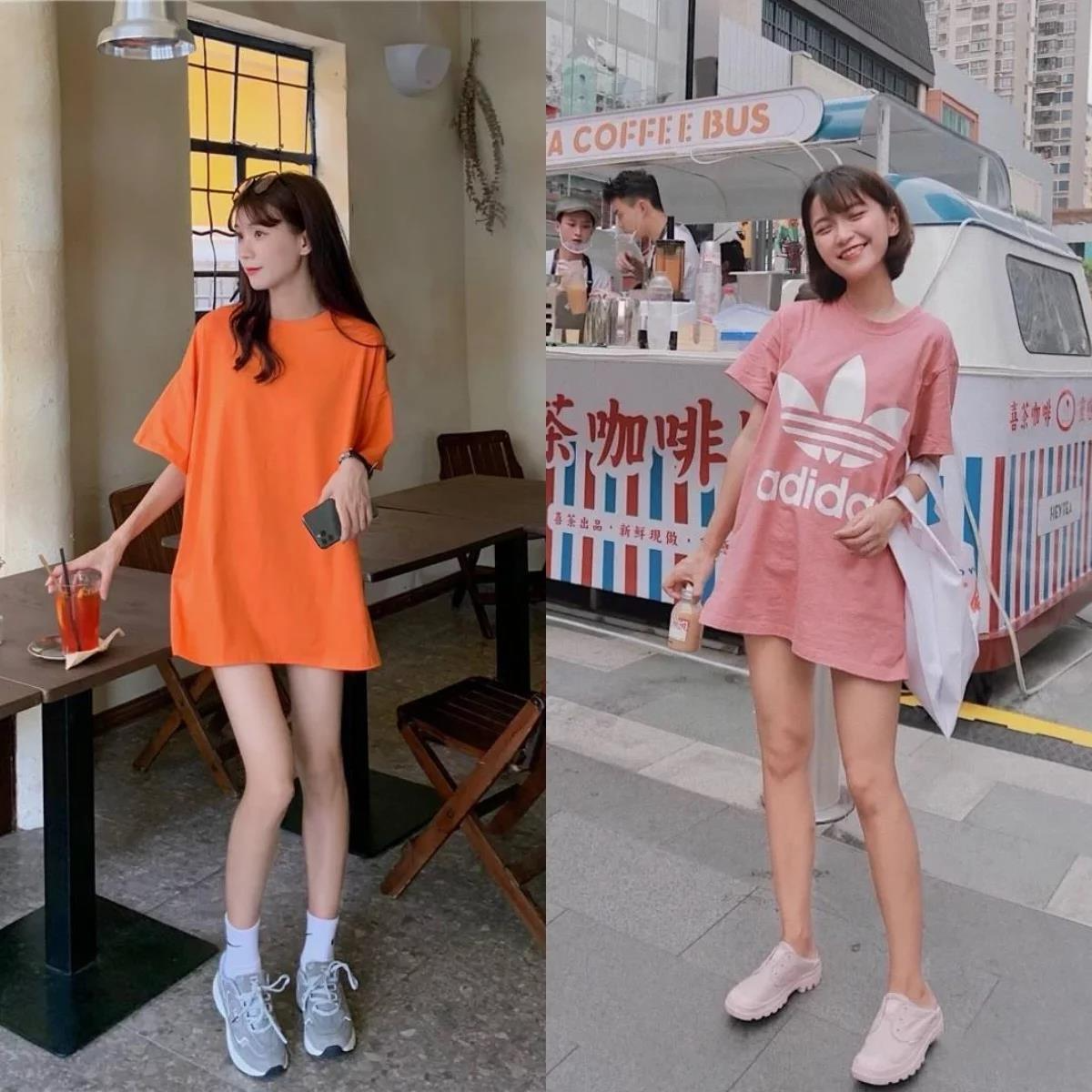 这种穿法也非常简单,选择一件长款的T恤搭配短裤,T恤的长度可以正好盖过裤脚,在大腿附近的位置最佳,这样就能打造这一穿法了。在搭配上,可以选择鞋袜的组合,更好的修饰小腿的线条,也可以选择上下同色的方式,增强造型的一体性。