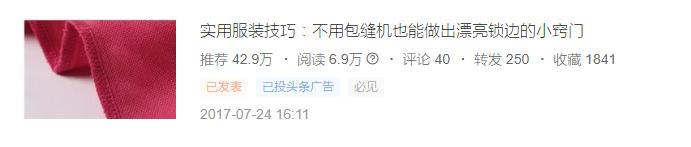 第九名收藏数1841:实用服装技巧:不用包缝机也能做出漂亮锁边的小窍门