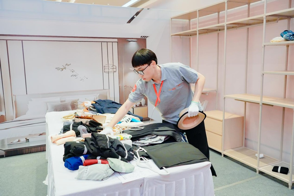 比赛以单人赛制展开,分为初赛和决赛两个阶段。初赛通过线上机考形式考察选手的理论知识,决赛则通过现场实操,重点考核选手在整理收纳中的实际操作能力。决赛当天,从初赛中脱颖而出的60名选手,展开了紧张激烈的角逐。