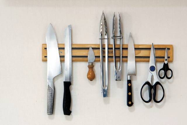 可以准备一个磁性刀架,超强磁力,除了收纳刀具,还可以收纳夹子、剪刀。