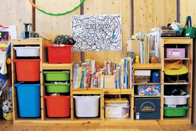 孩子的房间,按照大小、种类将玩具分类放在不同的收纳箱里,多彩的颜色本身就是一道风景线。
