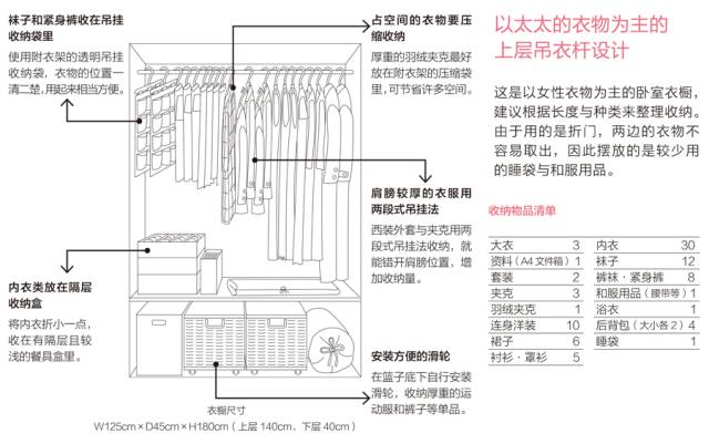 以太太衣物为主、以先生衣物为主、衣物和生活杂货相邻……一切情况都帮你想到,事无巨细地给你画出来,你无需动脑,只要照着做就好!