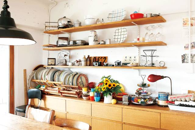 墙壁上的开放式层柜,也可以成为餐具和生活杂货的展示区。