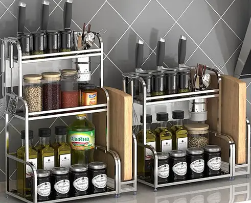 多层的样式更是能增加稳固性,厨房备一款这样的置物架简直必不可少。放置在厨房里,可以将油盐酱醋的瓶瓶罐罐摆放在上面。