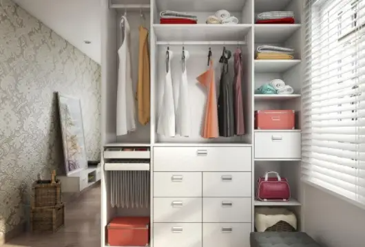 卧室里除了放一些生活用品衣物等,还有一些不容忽视的大件——棉絮以及不当季的衣服。所以我们在选择床品的时候,尽量选择高箱床。高箱床下面的储物空间一般来说都是足够我们放置一些棉絮等大件,把这些大件从卧室衣柜里拿出来以后,衣柜又增加了一些空间,收纳也更方便。