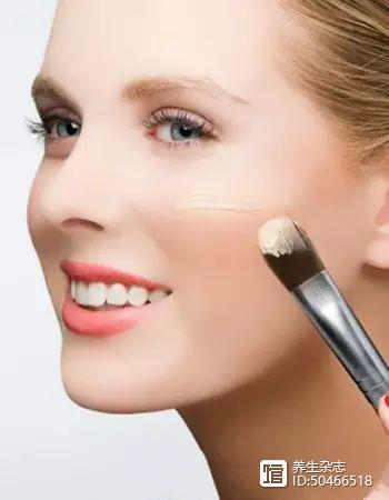 手法:取适量隔离霜/粉底,先用五点法点在额头、鼻子、两颊和下巴处。然后用中指指腹或海绵,将隔离霜/粉底轻点分散开,然后轻轻将其向外向下推开、推匀。请特别注意下巴、发际交接处,颜色要融合。