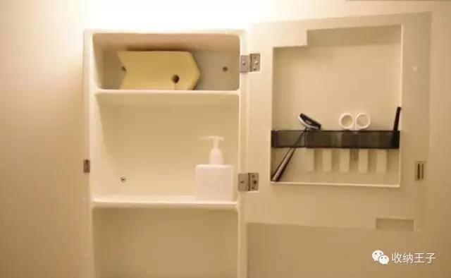 浴室里干净简洁,除了镜柜里的剃须刀、洗涤剂、清洁海绵等必需品,没有任何多余的物品暴露在外面。