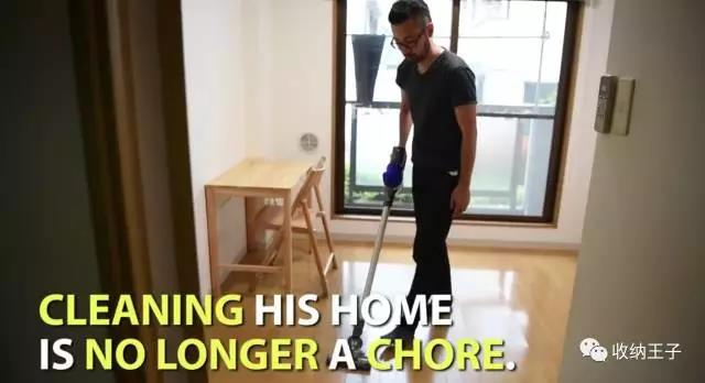 由于房间空无一物,佐佐木会每天打扫房间。扫地+擦地总共只需要2分钟时间,非常方便。