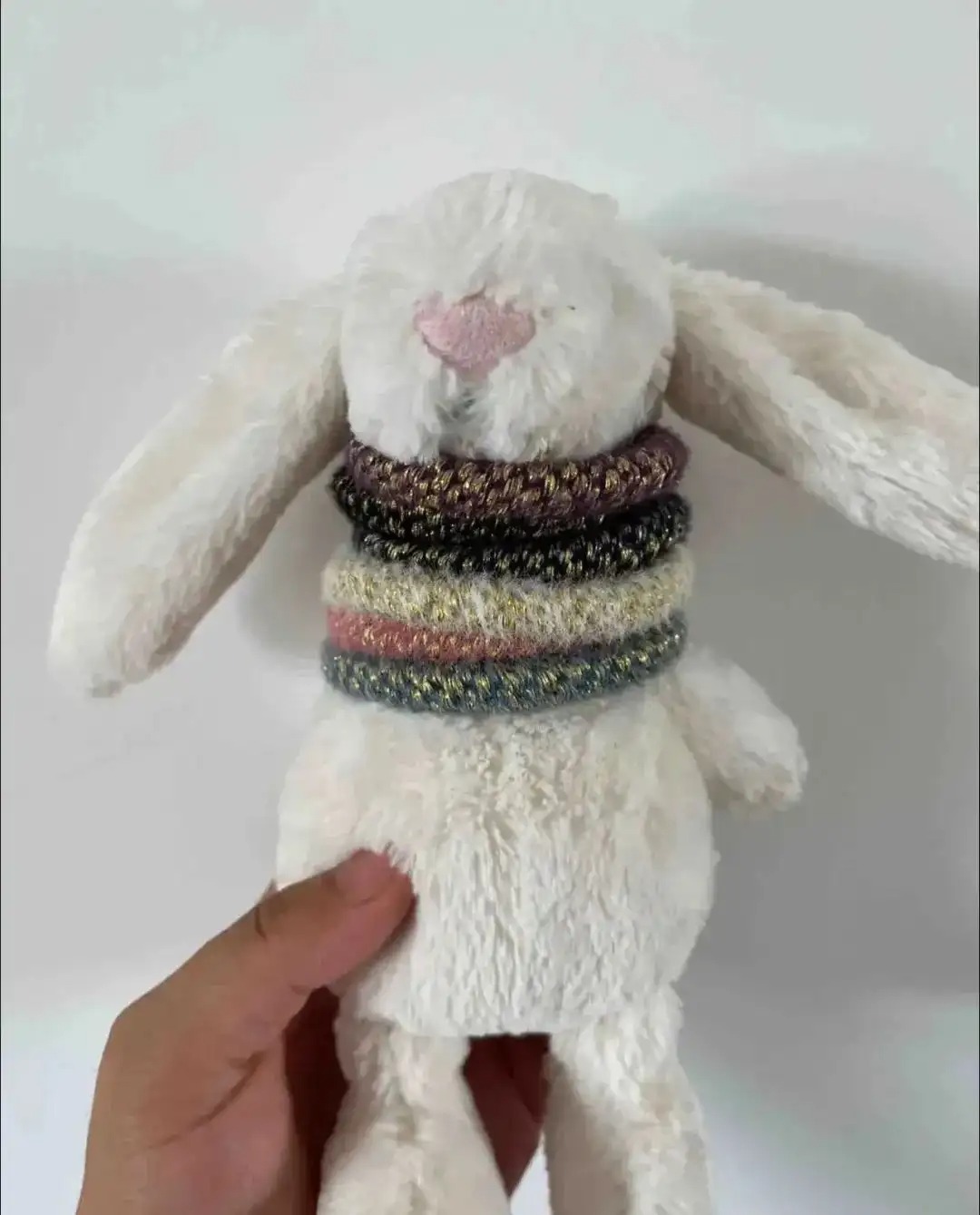 找到一个合适大小的玩偶,然后把发圈给套在玩偶的脖子上、腿上、胳膊上……即可。