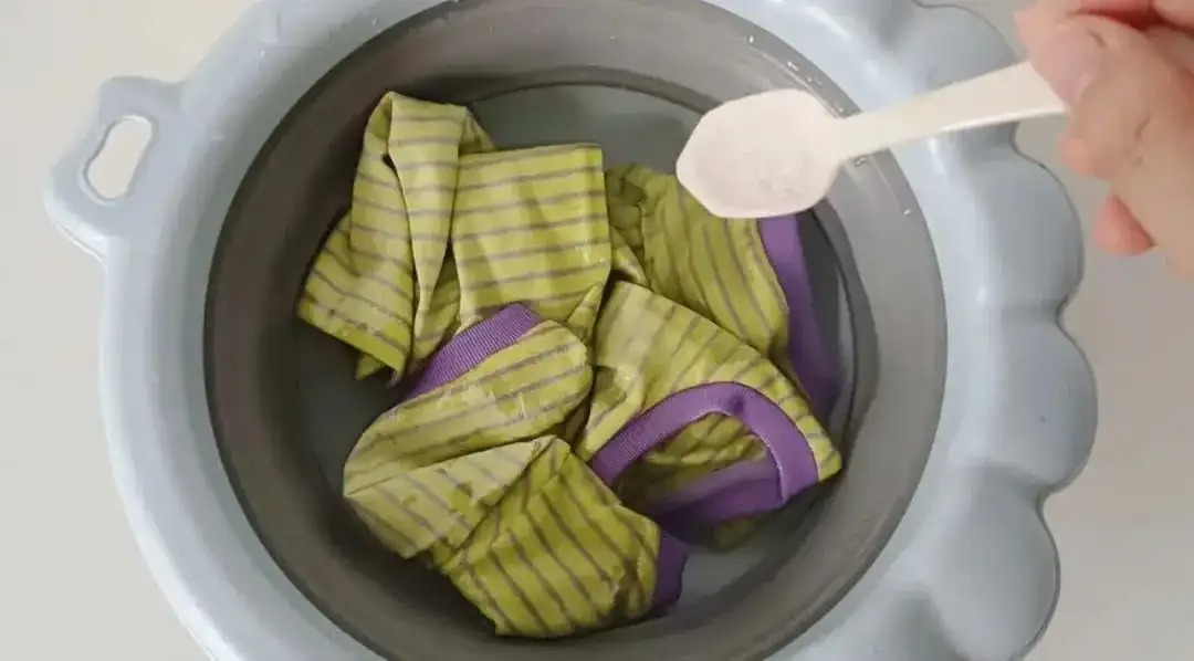 如果像这种颜色比较鲜艳的衣服,可以在洗的时候加点盐,盐主要起到一个固色的作用,日后再洗就不至于狂掉色了。