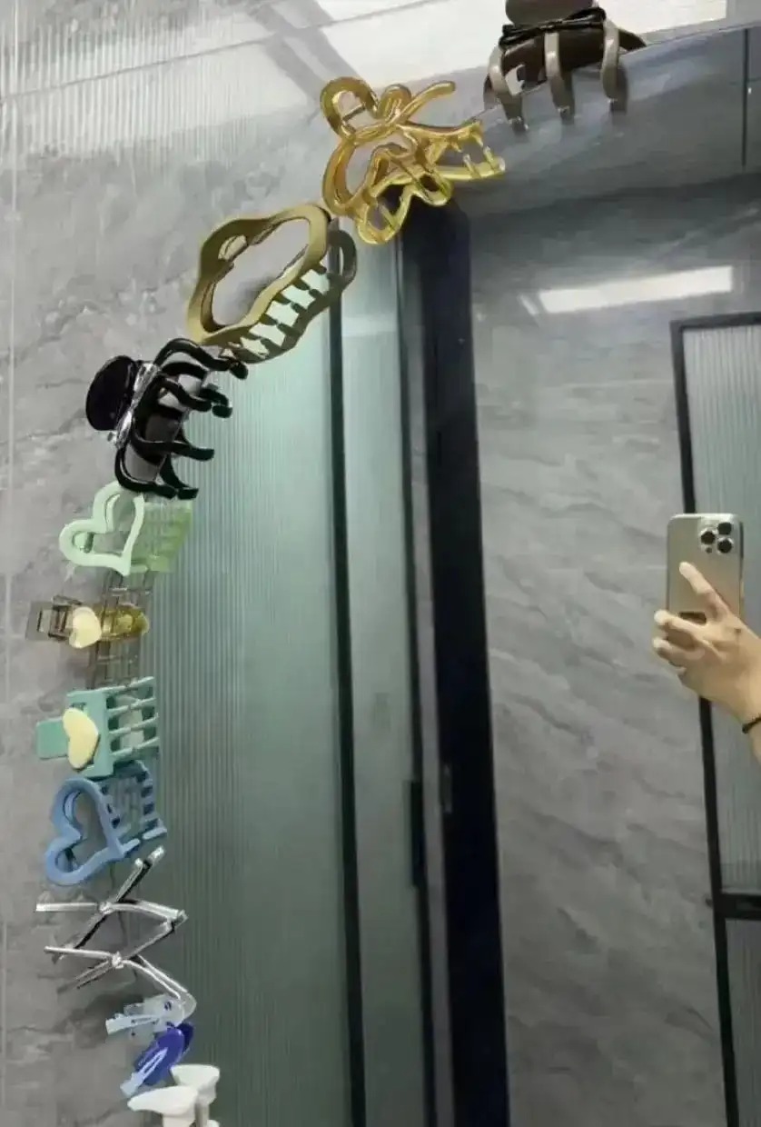 如果你家恰巧还有一个浴室镜,那不妨将这些抓夹,夹在镜子上。