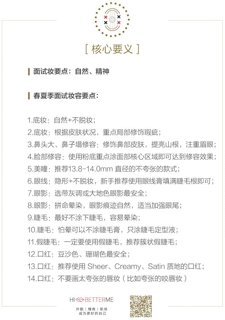 今天的面试妆,会在之前的基础上,根据不同工作的面试场合做一些妆容上要点的巩固和补充。这里先给一个文章太长不看版: