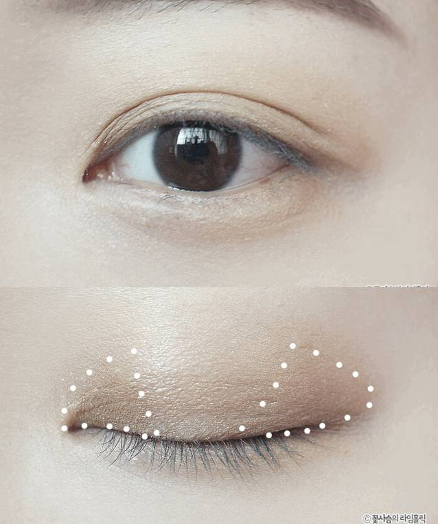 加强眼尾也是一样的道理,只不过打圈的范围由整个眼皮缩小到眼睛的后三分之一长度。