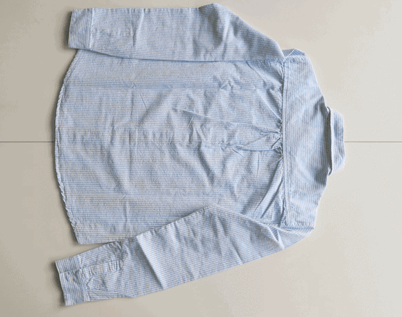正确的衣物折叠方法:把袖子沿基线整理向内翻折,找到衣物的基本形状——长方形。然后将衣物三折,最终可直立起来放进抽屉和搁板。