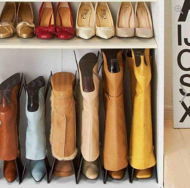 鞋子也可以利用硬卡纸和筒撑直立收藏起来,再也不用担心东一只西一只到处乱跑了。