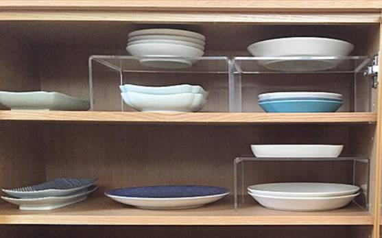 厨房的刀具、碗筷、杯碟,同样可以利用刀架和自身形状,进行直立收纳。