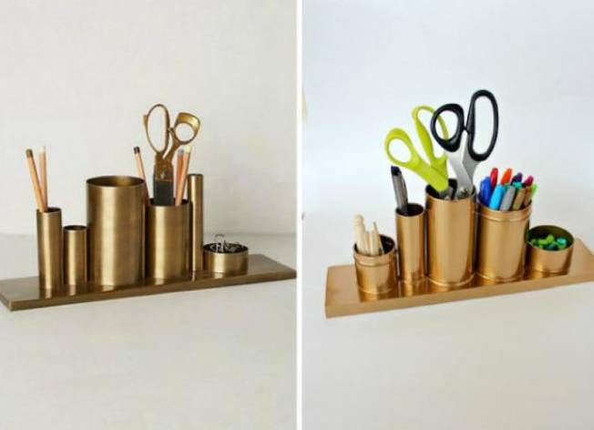 如果需要进一步节省空间,可以采用“工”字架和硬纸盒、文件夹、牛奶筒进行改造,利用较硬的质地,对物品做区隔。