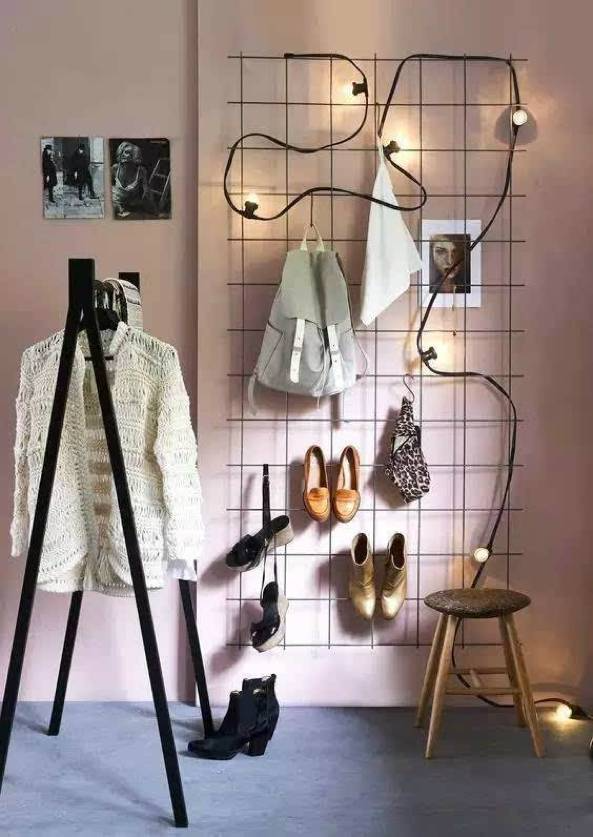 在墙上挂上铁艺网格,放上自己最喜欢的常用物件,一面兼具展示和收纳作用,功能超强的装饰墙就诞生了。