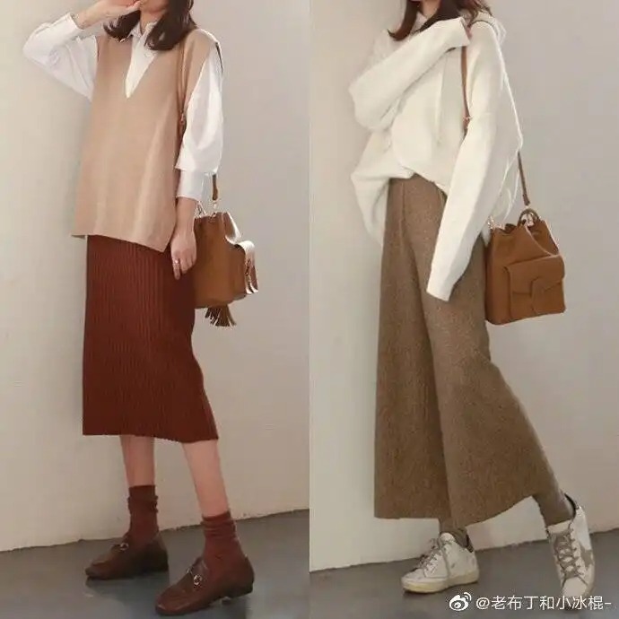 白色衬衣看着很有OL范,搭配一件米色V领毛衣背心,很休闲舒适的搭配,下身可以选择一条焦糖色包臀裙,整体搭配非常凸显气质哦,尤其带着一些温婉的淑女感。白色带帽卫衣搭配一条棕色阔腿裤,简简单单又很百搭,衣服塞进裤子里更加潮流,还很显腿长哦,阔腿的设计还能遮住肉肉像微胖的女生也很适合这样搭配哦。