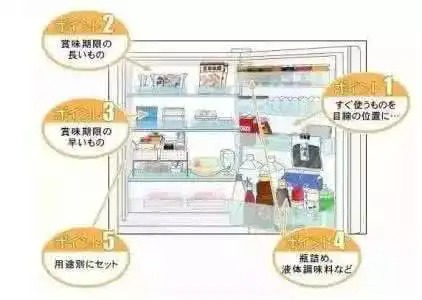 来按食物排放置在冰箱中的位置