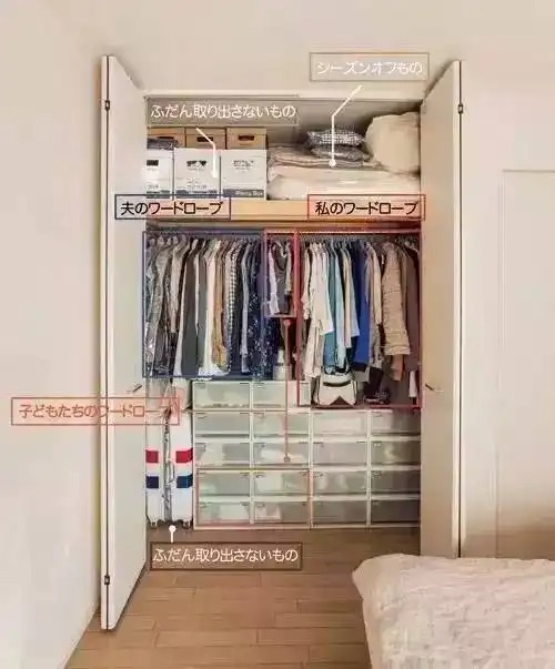 以下是一个日本传统三口之家的衣柜