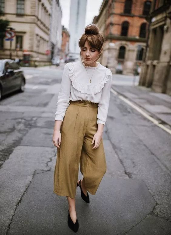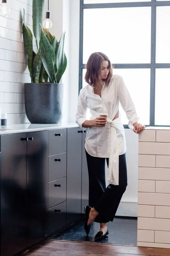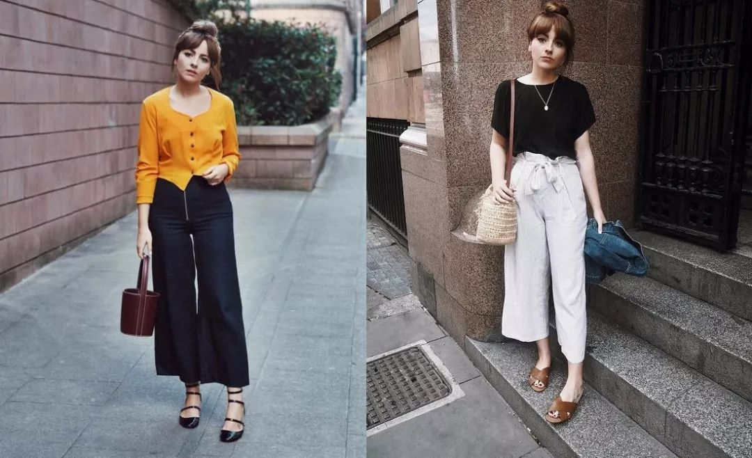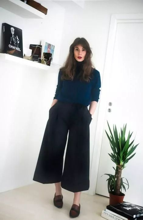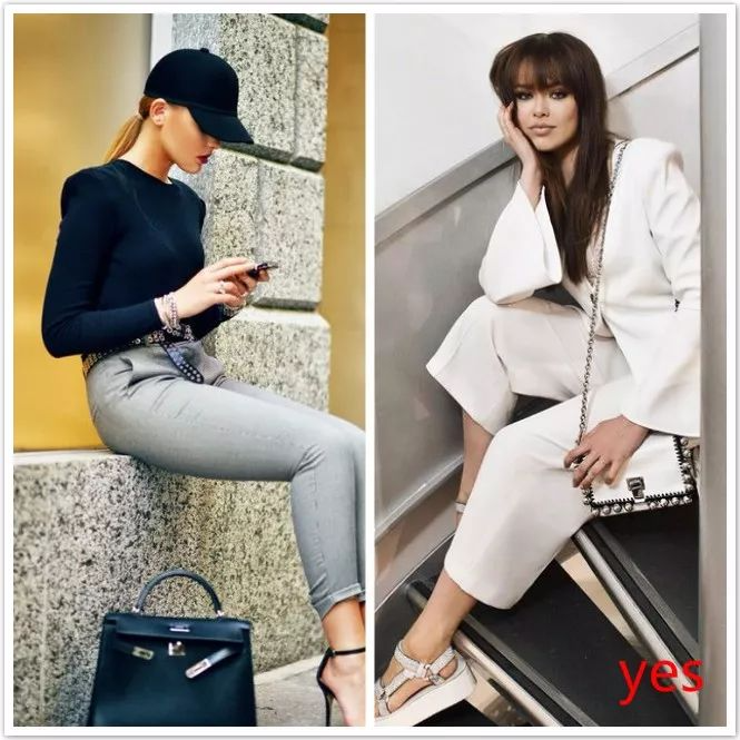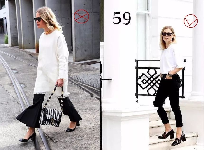 小腿粗的姑娘最要避免的就是窄脚紧身裤。