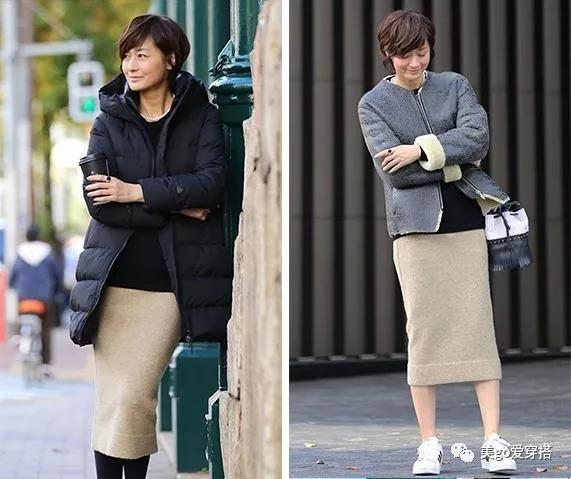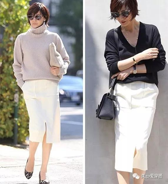 中性色的直筒裙是成熟女性衣柜必备单品,搭配不同上衣,穿出不同的风情。▼