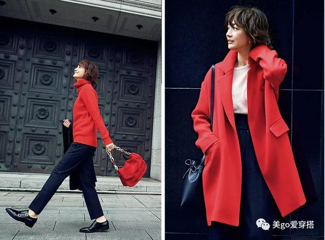 如果你要去古香古色的古城小镇旅行,红色会格外养眼。红色的上衣和外套搭配藏蓝色、白色内搭很和谐。▼