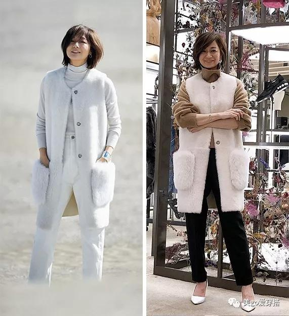这件白色茧型马甲保暖时尚感,搭配不同的打底和下装,打破冬装的沉闷。▼