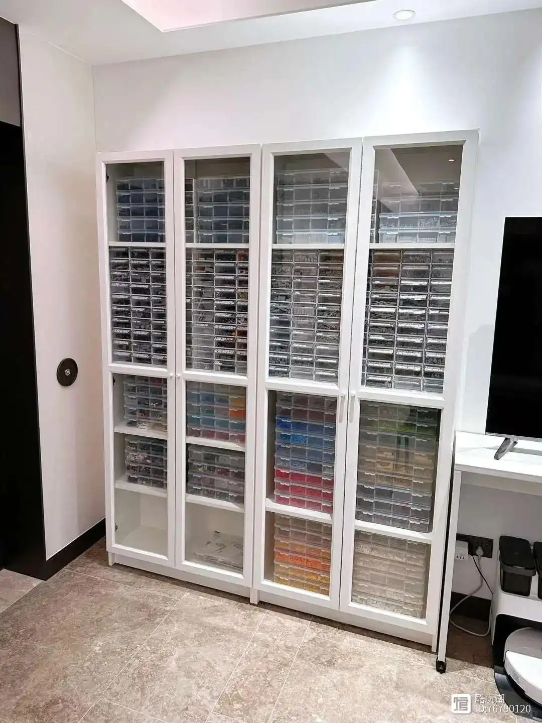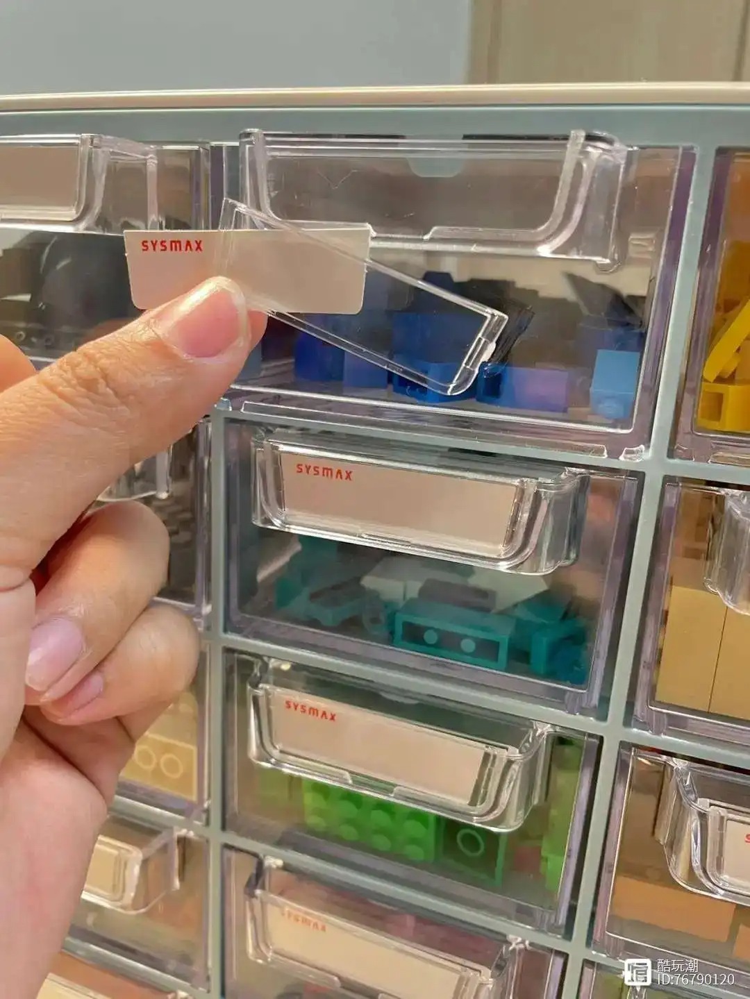 抽屉整齐拉开,颗粒一格一类,红蓝黄绿分区排布,编号清晰明了——收纳完成的一瞬间,现场极度舒适。
