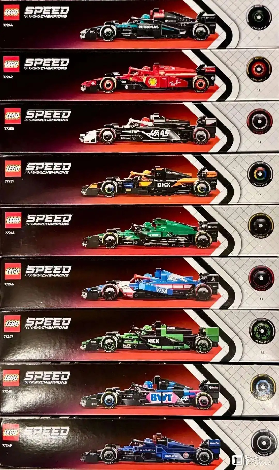 九盒乐高 Speed 系列整整齐齐排列在一起,仿佛是等待检阅的模型方阵。没加滤镜,画面就已经有种天然的秩序感。