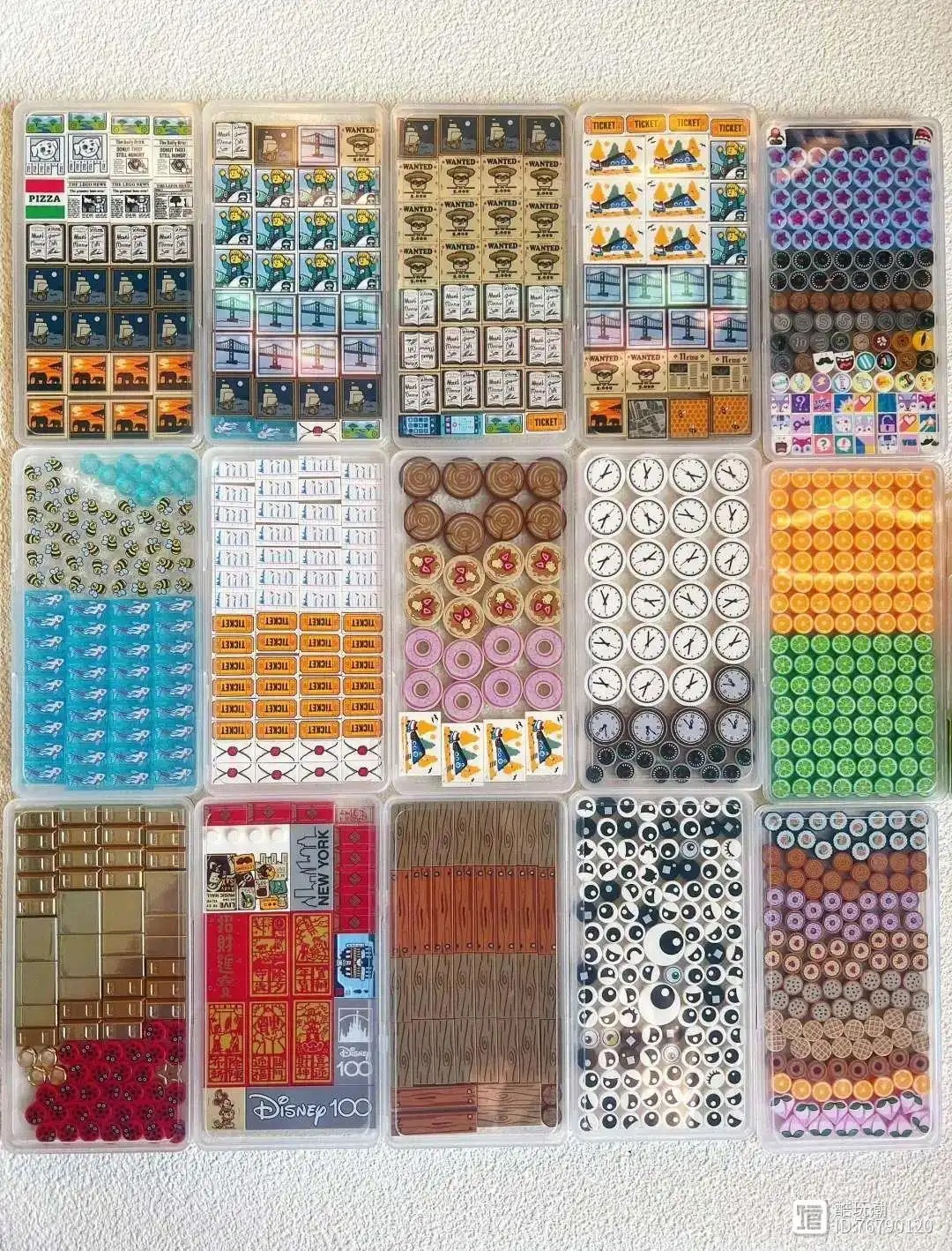 所有乐高印刷件都安排得正面朝上,同种图案整齐地放在一起。每一块都保持一致的位置,这样的收纳方式非常视觉友好。