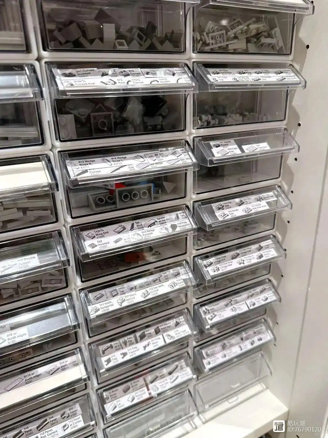 每一种乐高零件,都被精确地按照颜色和种类安放进抽屉格里。红是红、蓝是蓝,斜坡砖不会和板挤一块,颗粒之间都保持社交距离。