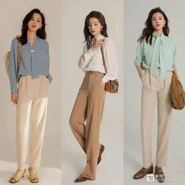 例如加飘带,就可以变得很优雅,也可以穿出大女人的气派,或者选择一款带着清新气息的,带着温柔的米色,杏色,卡其色的套装裤,不会让人觉得单调,又显得年轻而充满活力。