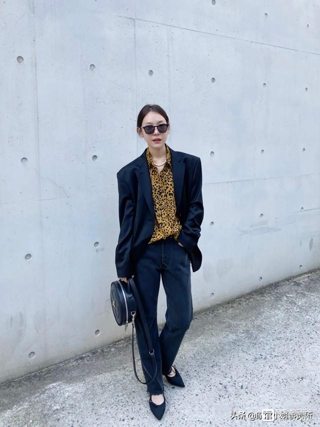 对于这种单品面积大,比较时髦和突出的豹纹图案衬衫,可以作为整个look的点睛部分。搭配上西裤,很中性风格,在风格上跟衬衫做中和。