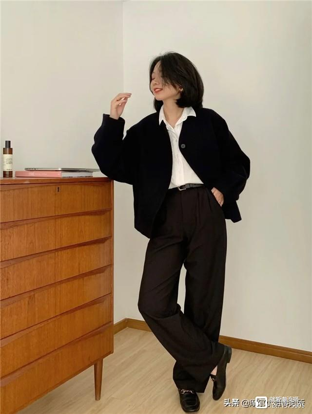 对于穿衣小白而言,搭配技巧太难了,这套穿搭无论是颜色还是款式都百搭高级,而且适合的场合也非常多,比如说上班职场或是出街约会,清爽的黑白搭打破all black的单调,同时也保留了基础色系的高级大气,主调为黑色,上半身选择的黑色夹克会更显娇小可人,完全不需要考虑自身身材。