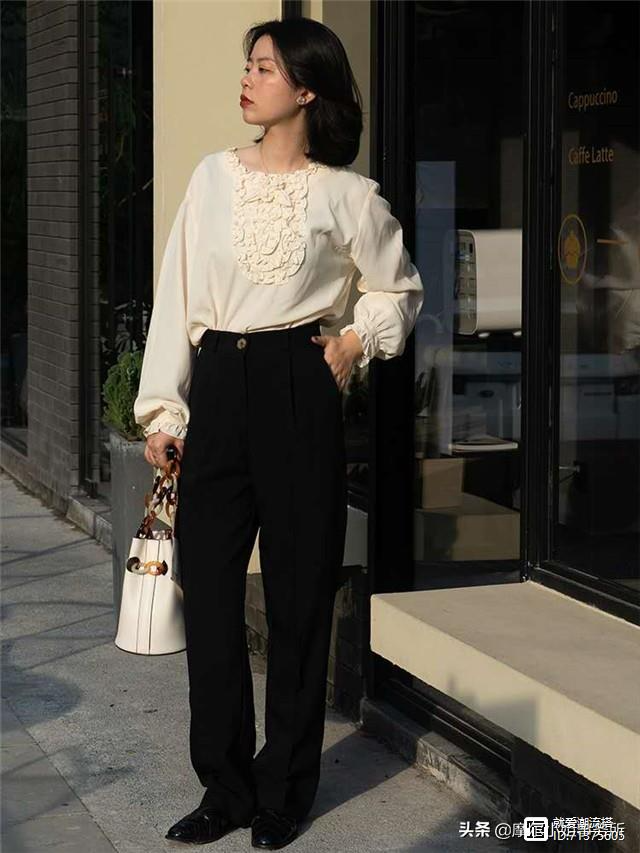 高腰西裤绝对是抬高腰身比例的神器,与一般休闲裤相比,西裤面料垂坠效果更强,质感十足带着飒爽气场,拖地长度刚刚好,是今年最流行的盖脚设计。