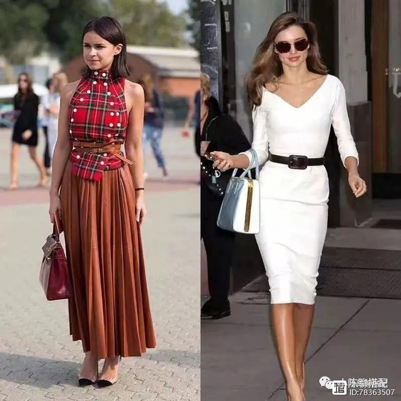 上短下长,这样的穿法使得腰线把全身分成上下两部分,下半身线条超修长,人也变得高挑纤细让人感觉自己胸部以下全是腿的错觉,在配合大领口的衣服,完美隐藏小肚子,想不显瘦都难。