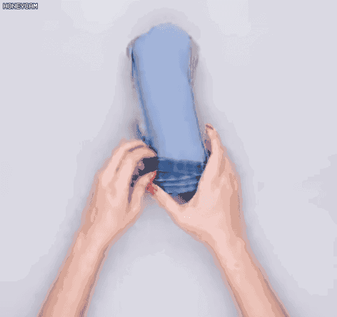 完成之后一条牛仔裤便成了窄窄的一卷,可不是只占了原来的1/3么!