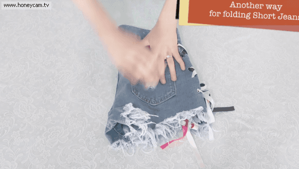 还是那个原则,将短裤的四边翻折,尽量折成一个四四方方的形状。