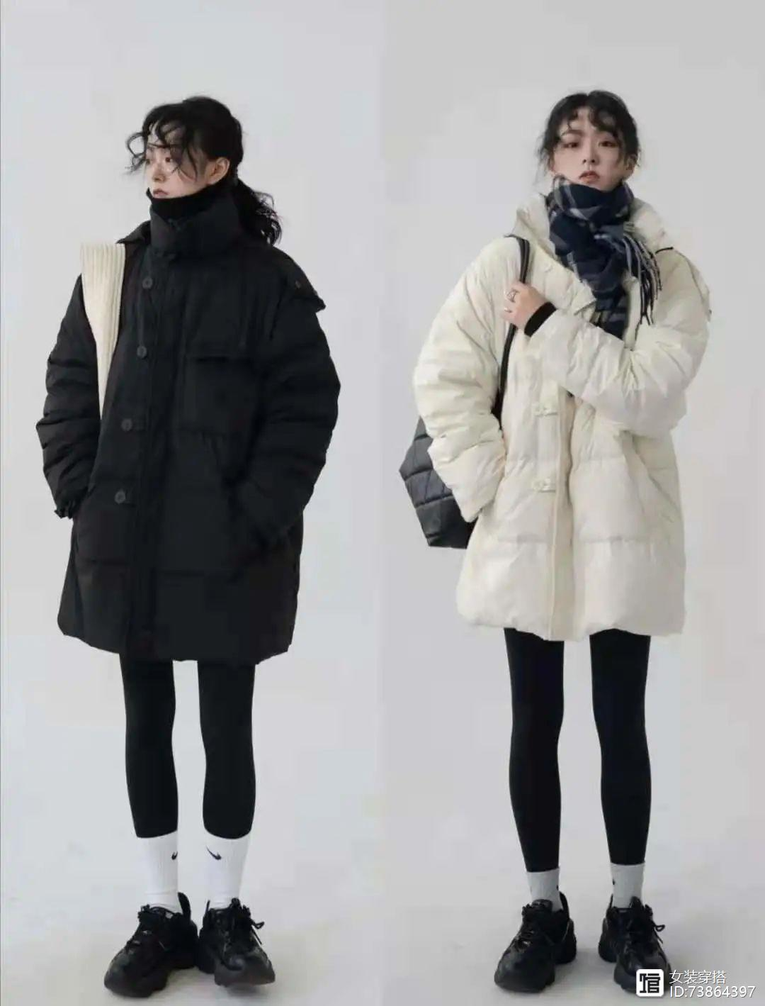 look9 黑白两面羽绒服+黑色加绒打底裤+黑色运动鞋