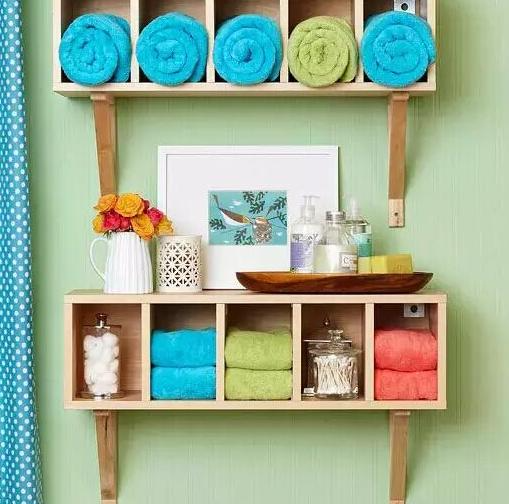 卫浴间收纳整理窍门卫浴间是比较容易滋生细菌的,大家一定不能忽视卫浴间的整理收纳,卫浴间也可以利用收纳架来摆放洗漱用品哦,看起来整齐而干净,拿东西也非常便捷,像马桶边摆放的铁艺三层收纳架,还有墙面的置物架设计,不仅利于收纳,也非常节省空间,整个空间显得通透明亮。