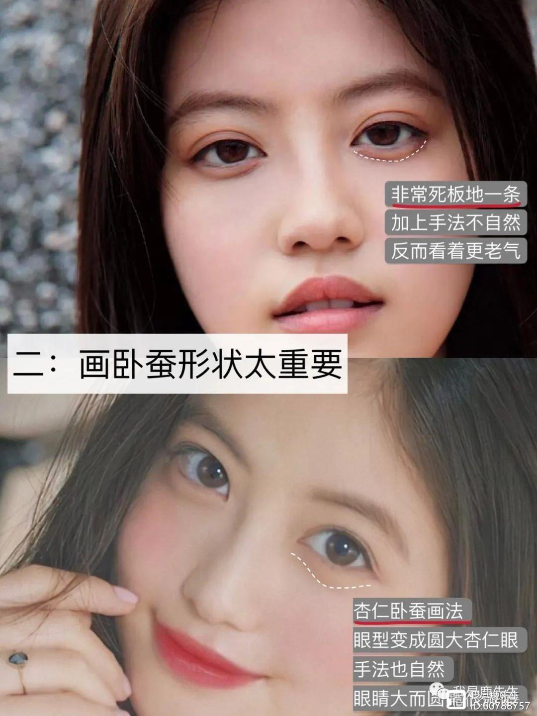 ✔️ 画卧蚕的形状太重要!杏仁卧蚕画法,让眼睛大而圆润更减龄。
