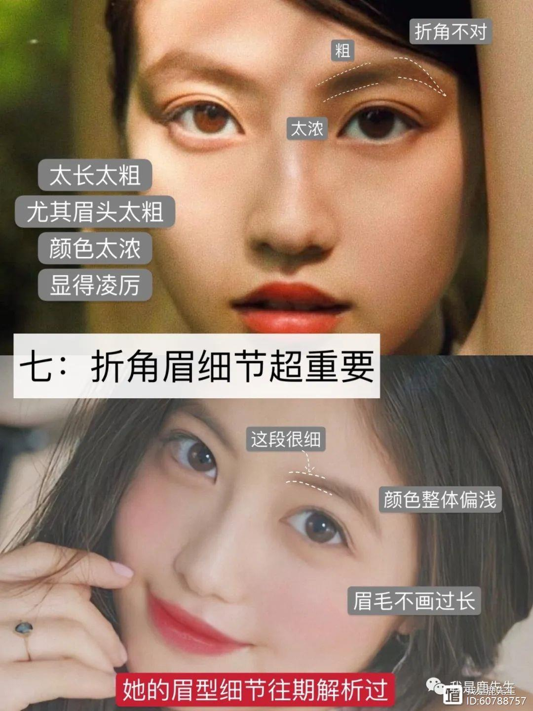 ✔️ 眉型注意折角眉,眉头不要画得过长。
