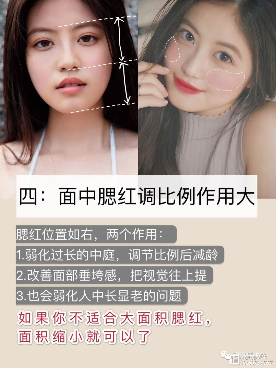 ✔️ 面中腮红调比例作用大,腮红的位置能达到很好的减龄效果。