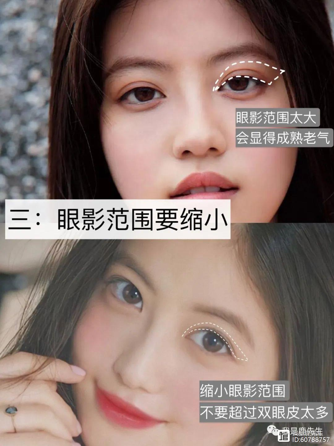 ✔️ 眼影的范围要缩小,不要超过双眼皮太多。