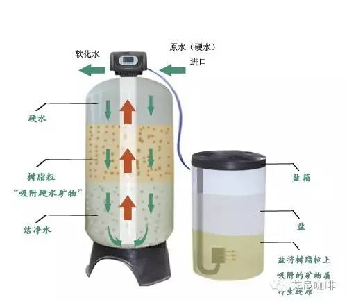 冲洗:按照供水时的流程使水通过树脂冲洗多余的盐液和再生交换下来的钙镁离子。