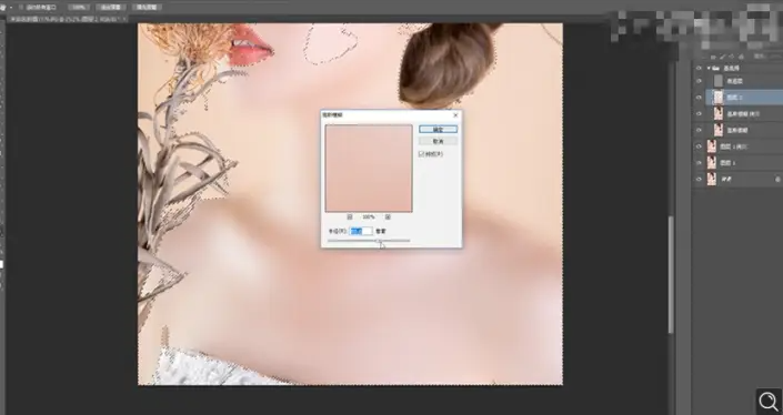 9使用[魔棒工具http://www./tags/38455/]选择皮肤区域,按[Ctrl+J]复制图层,单击[滤镜]-[模糊]-[高斯模糊],具体参数如图示。具体效果如图示。