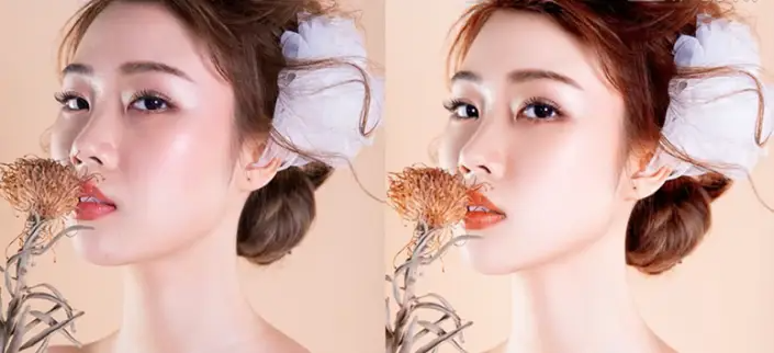 原图和效果猛一看没有多大的变化,但是葱细节上还是有不同,修过的图片更加的精致,人物面部高光区域显的不是那么的“油”,在原图的基础上稍微进行一些调整,人物皮肤的细节也出来了,加上前期模特表现和妆容都很好,所以后期也没有做很大的改动,具体结合实际情况进行操作练习吧,相信你可以做的更好。