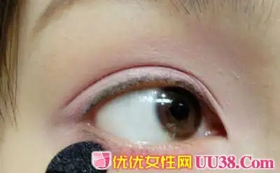 步骤二:然后换一把小号干净眼刷,蘸取粉色眼影在眼珠正下方轻扫,营造一个粉色的氛围。#p#副标题#e#